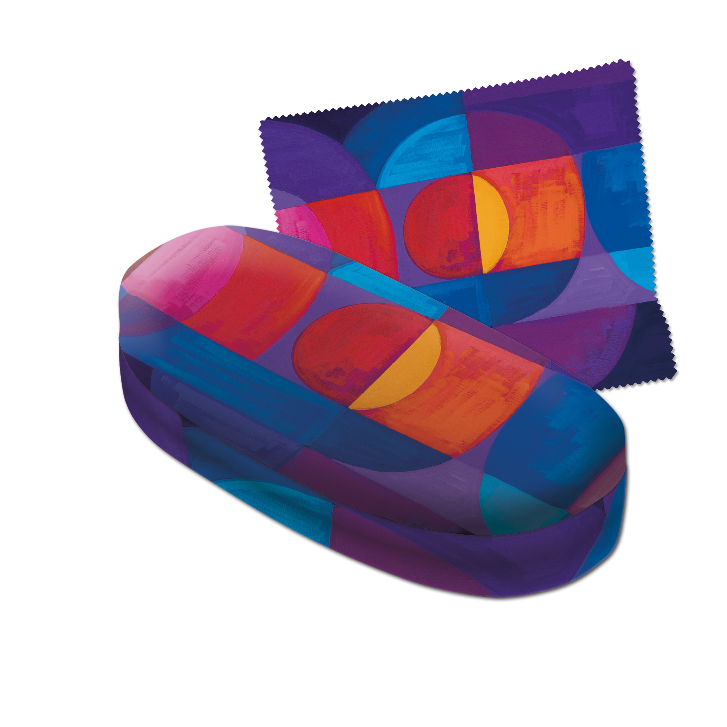 Het bijbehorende microvezel brillendoekje heeft dezelfde print als de brillenkoker. Microvezel zorgt voor een krasvrije en streeploze reiniging van (zonne)brillen en beeldschermen, zonder gebruik van schoonmaakmiddelen.