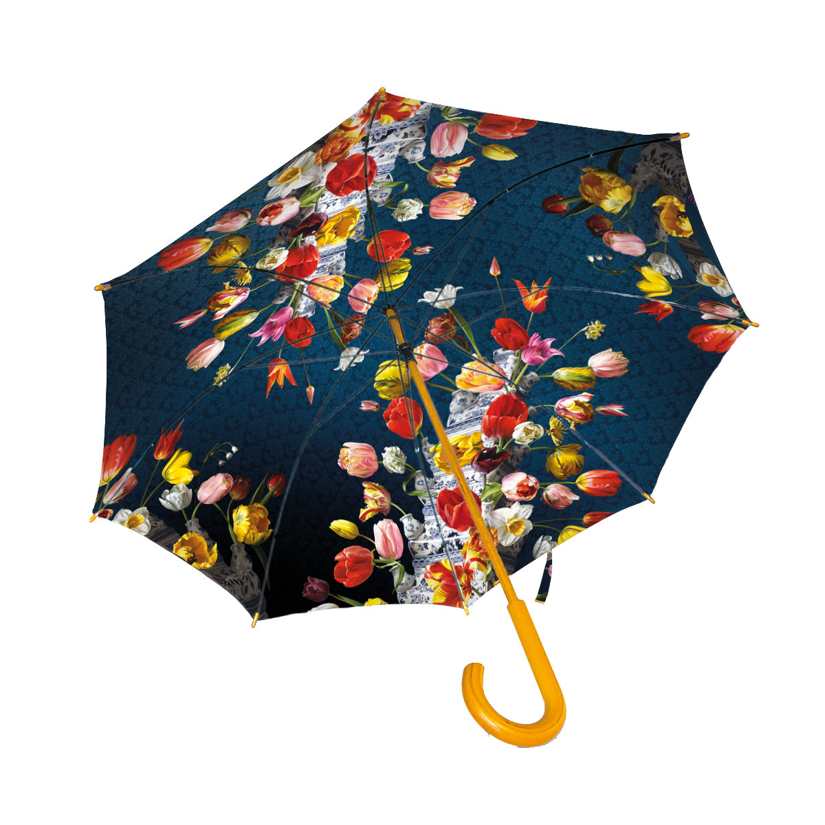 Zelfs een regenachtig moment wordt een feestje met de royale museum-paraplu van Bekking & Blitz. Het ronde houten handvat zorgt voor een stevige grip. En de houten stok geeft de paraplu een natuurlijke en klassieke uitstraling. De paraplu wordt bij elkaar gebonden door een klittenbandsluiting.