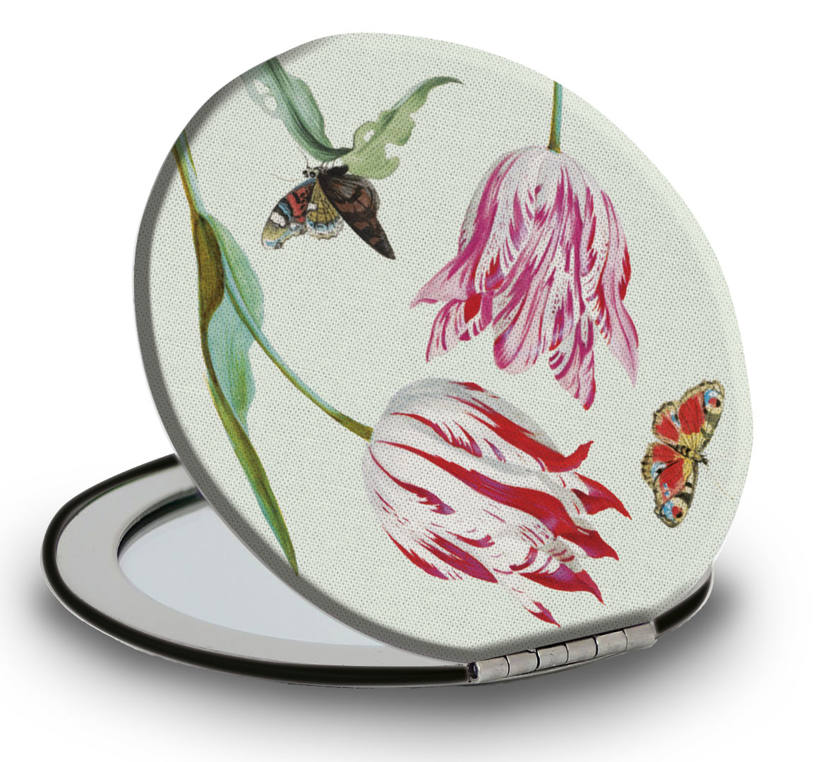 Een onmisbare accessoire voor in elke tas; de originele reisspiegeltjes van Bekking & Blitz. Het reisspiegeltje is aan de buitenzijde bekleed met zacht microvezel en heeft een museale print. De binnenkant bestaat uit twee spiegels van helder glas. Door de klapscharnieren sluiting blijft de reisspiegel stevig dicht zitten en kan deze niet beschadigen.