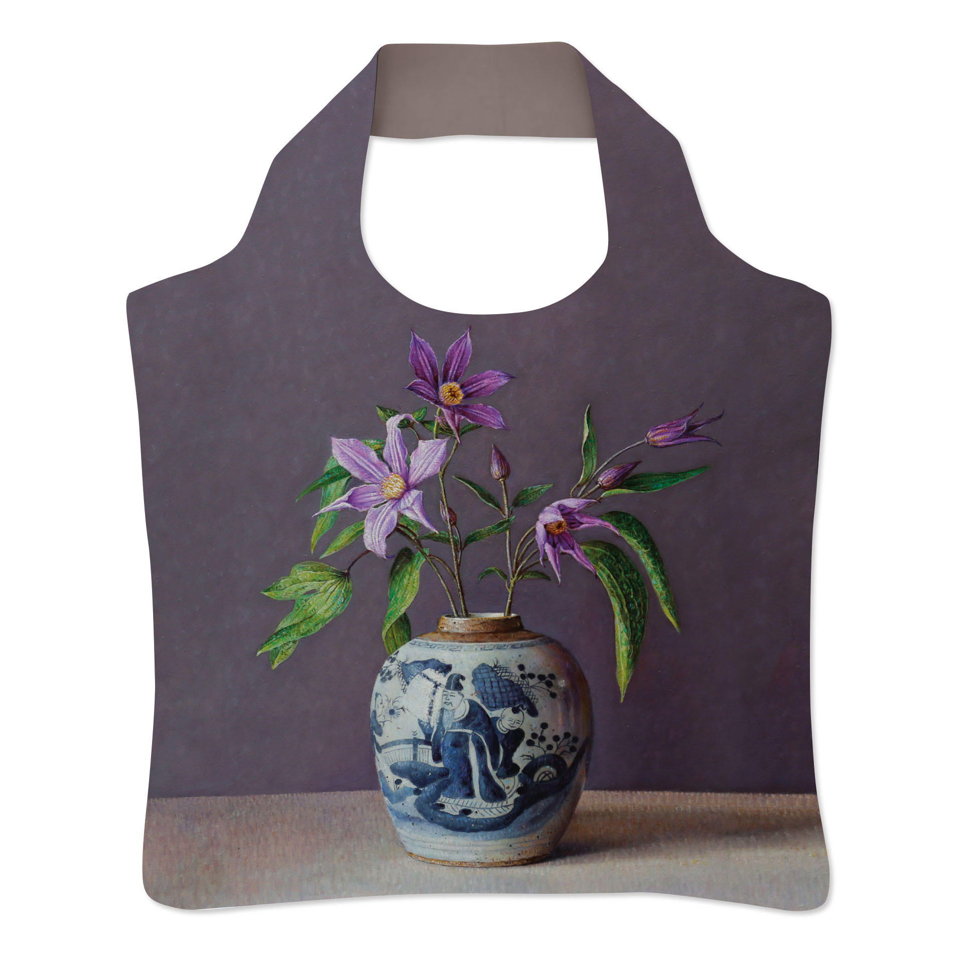 Vouwtas: Clematis in Chinese pot, Ingrid Smuling
