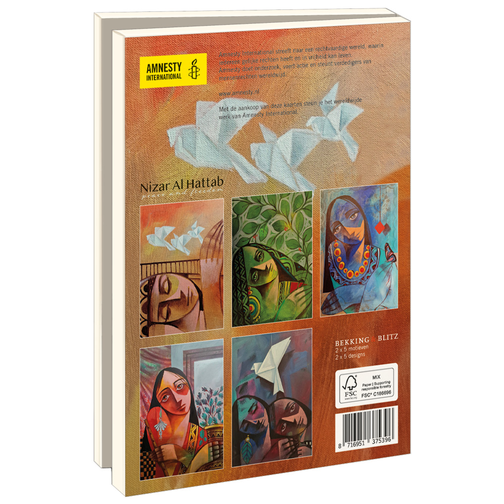 Kaartenmapje met env, groot: Peace and freedom, Nizar Al Hattab, Amnesty International