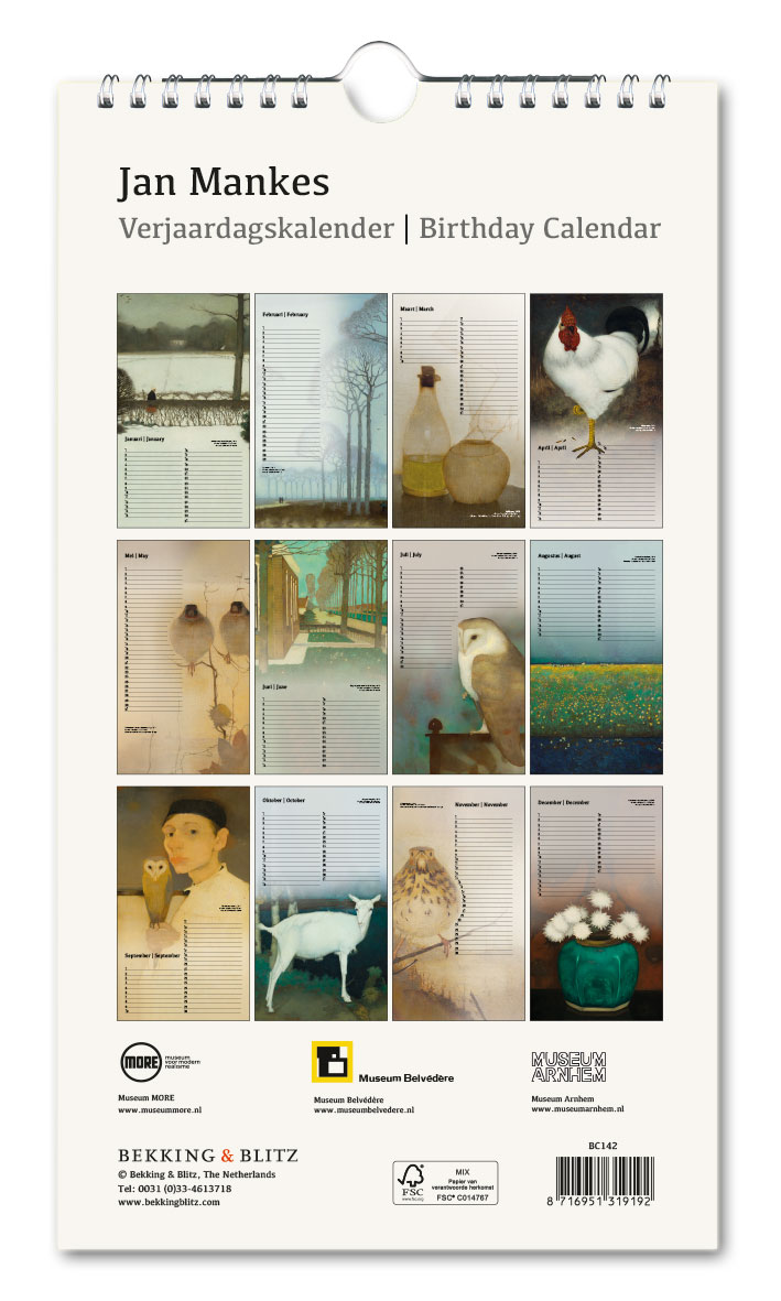 Nooit meer een verjaardag of een ander memorabel moment vergeten met onze kunstige verjaardagskalender. Bij elke maand een andere illustratie. Hang de kalender eenvoudig aan de muur met het handige ophangoog.