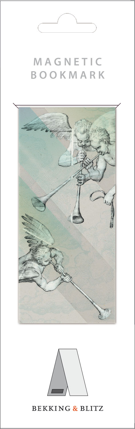 De stevige boekenleggers van Bekking & Blitz hebben aan de ene kant een fraaie afbeelding, aan de andere kant wordt de titel van het kunstwerk vermeld en eventueel uit welk museum het beeld afkomstig is.