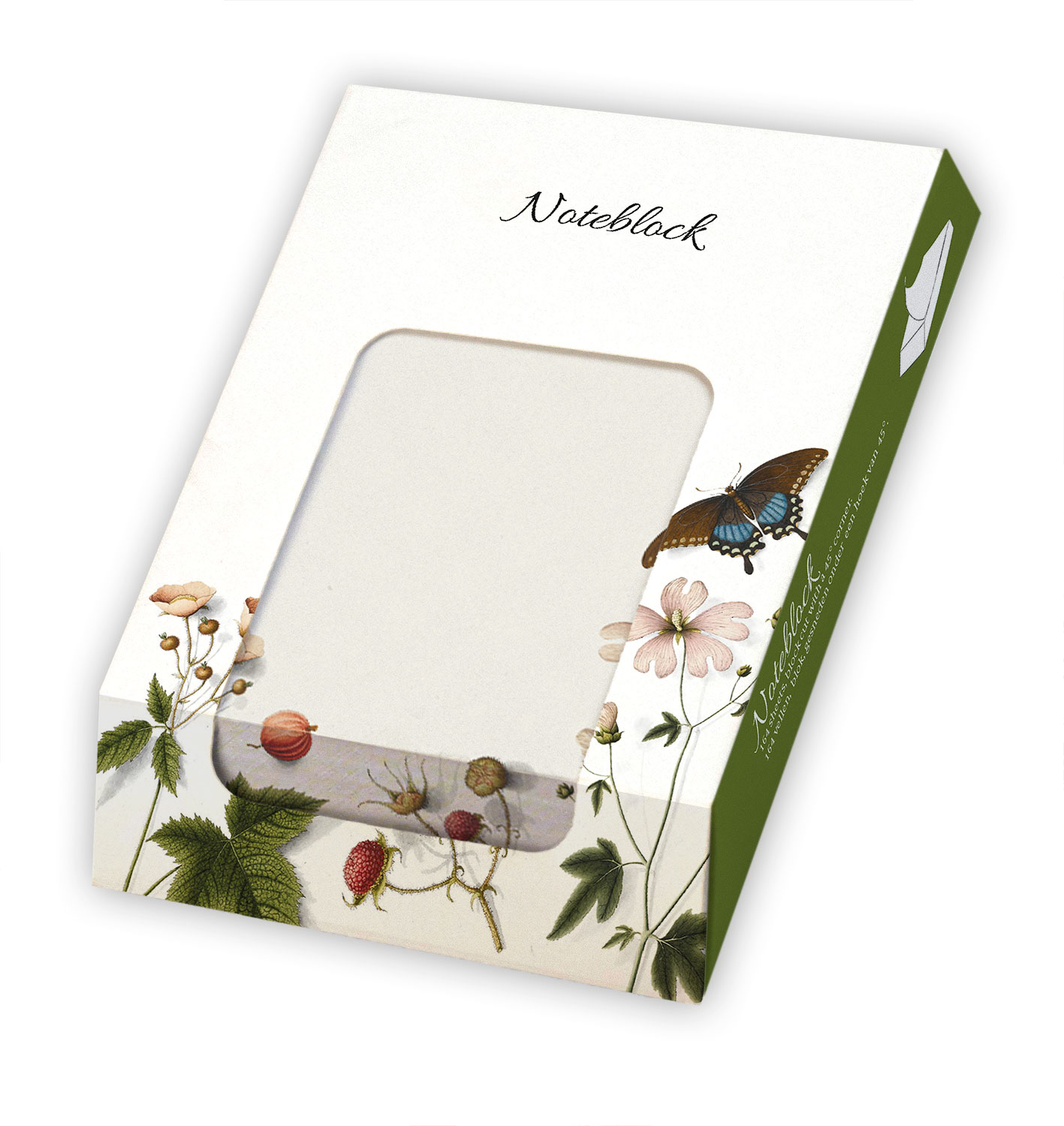 Een handig notitieblok voor een snelle krabbel of het noteren van een echt niet te vergeten reminder. Door de afgesneden hoek van 45 graden blijft de afbeelding royaal in beeld met behoud van de schijfruimte. De voorkant van een notitie-vel is full color bedrukt in de kantlijn, de achterkant is blanco voor nog meer schrijfruimte.