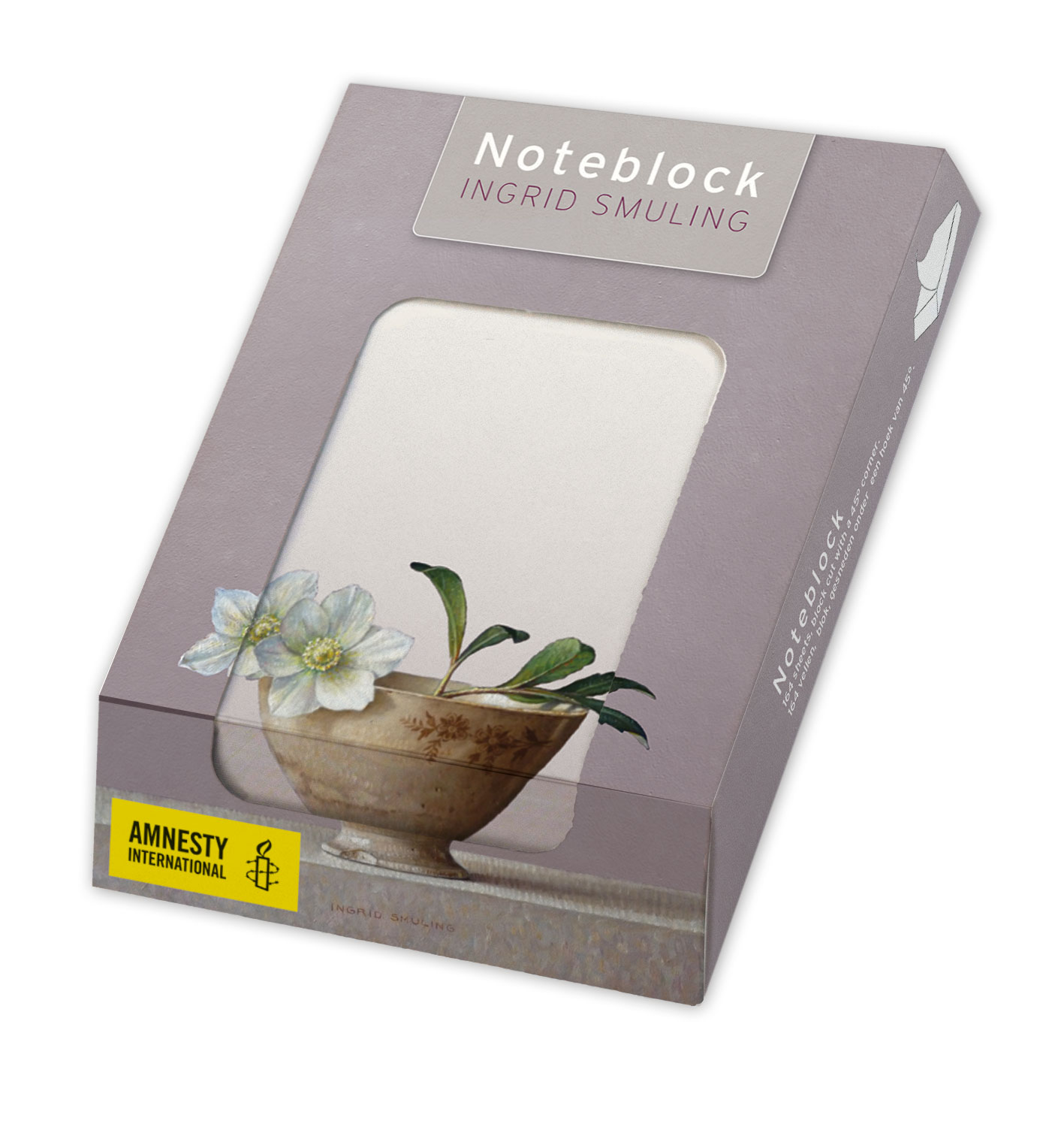 Memo blocnote: Helleborus in bruine kom, Ingrid Smuling, Amnesty International