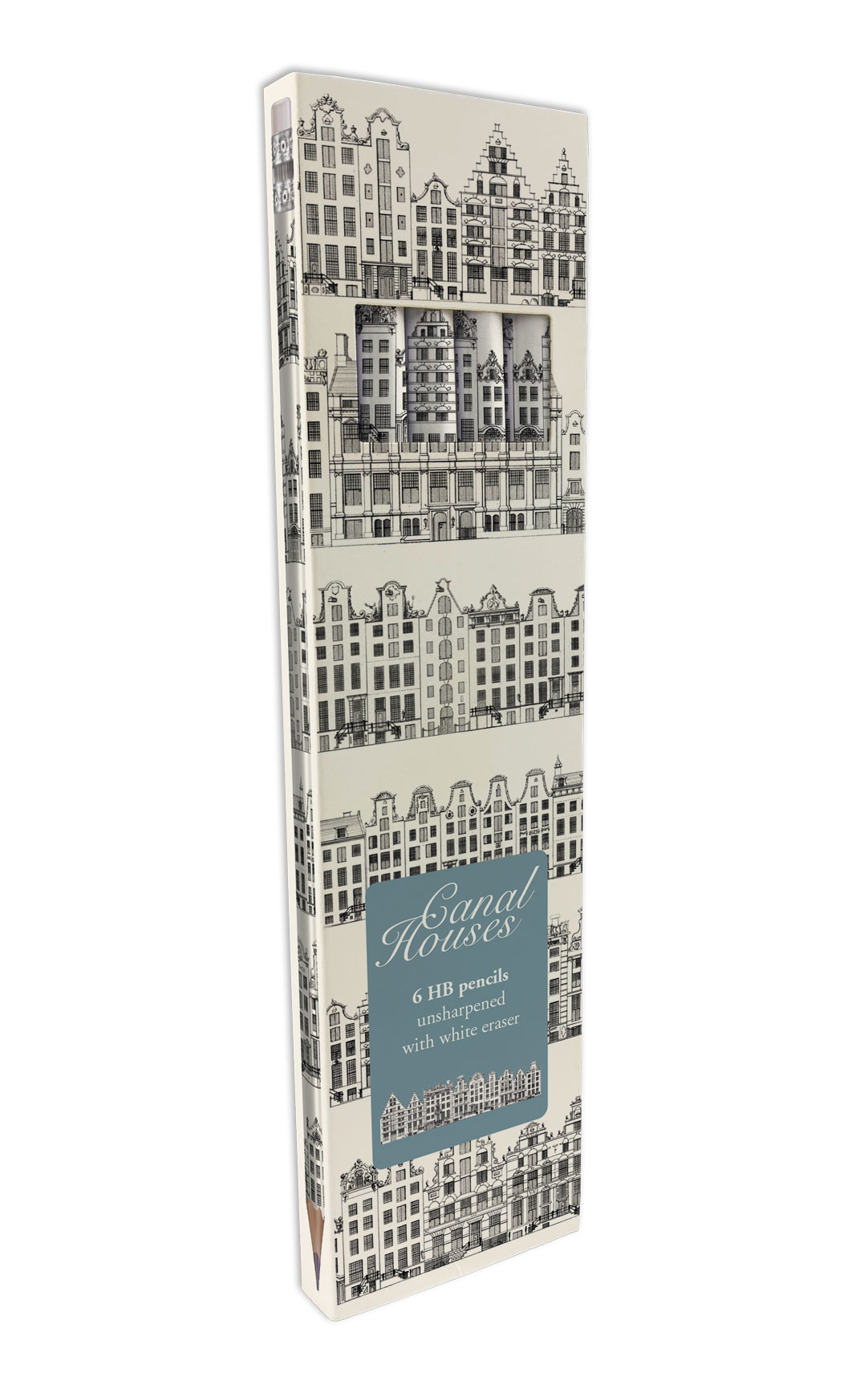 Set van 6 met kleurrijke kunst bedrukte HB potloden in kartonnen doosje, inclusief gum